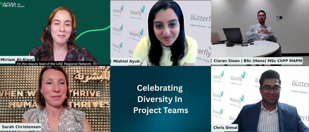 The Butterfly was delighted to join the Association of Project Managers (APM) UAE Regional Network for their Pathway to Leadership webinar, Celebrating Diversity in Project Teams, held on 30 July. The session drew strong interest, reflecting the growing importance of this topic.